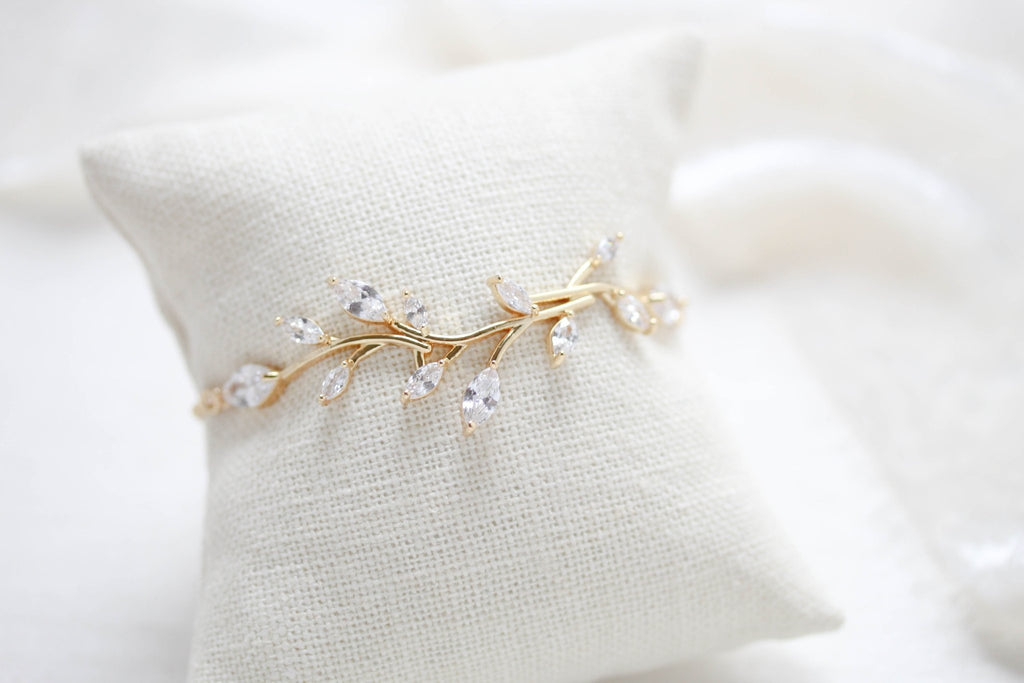 Delicate Rose gold Bridal adjustable CZ Bridal bracelet created in a nature inspired design with sparkly cubic zirconia stones