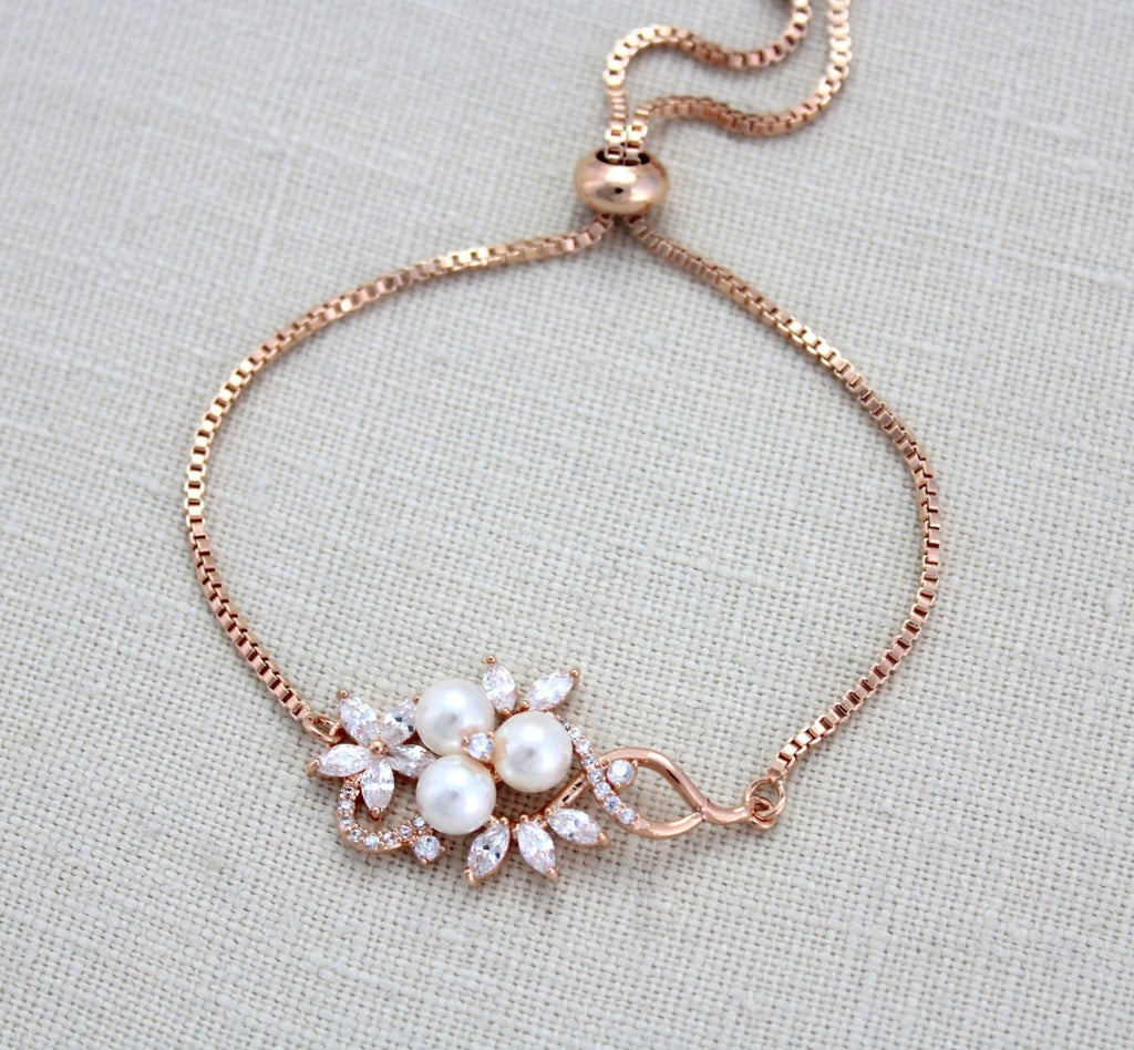 Rose gold bridal bracelet, Simple adjustable slide bracelet MIA