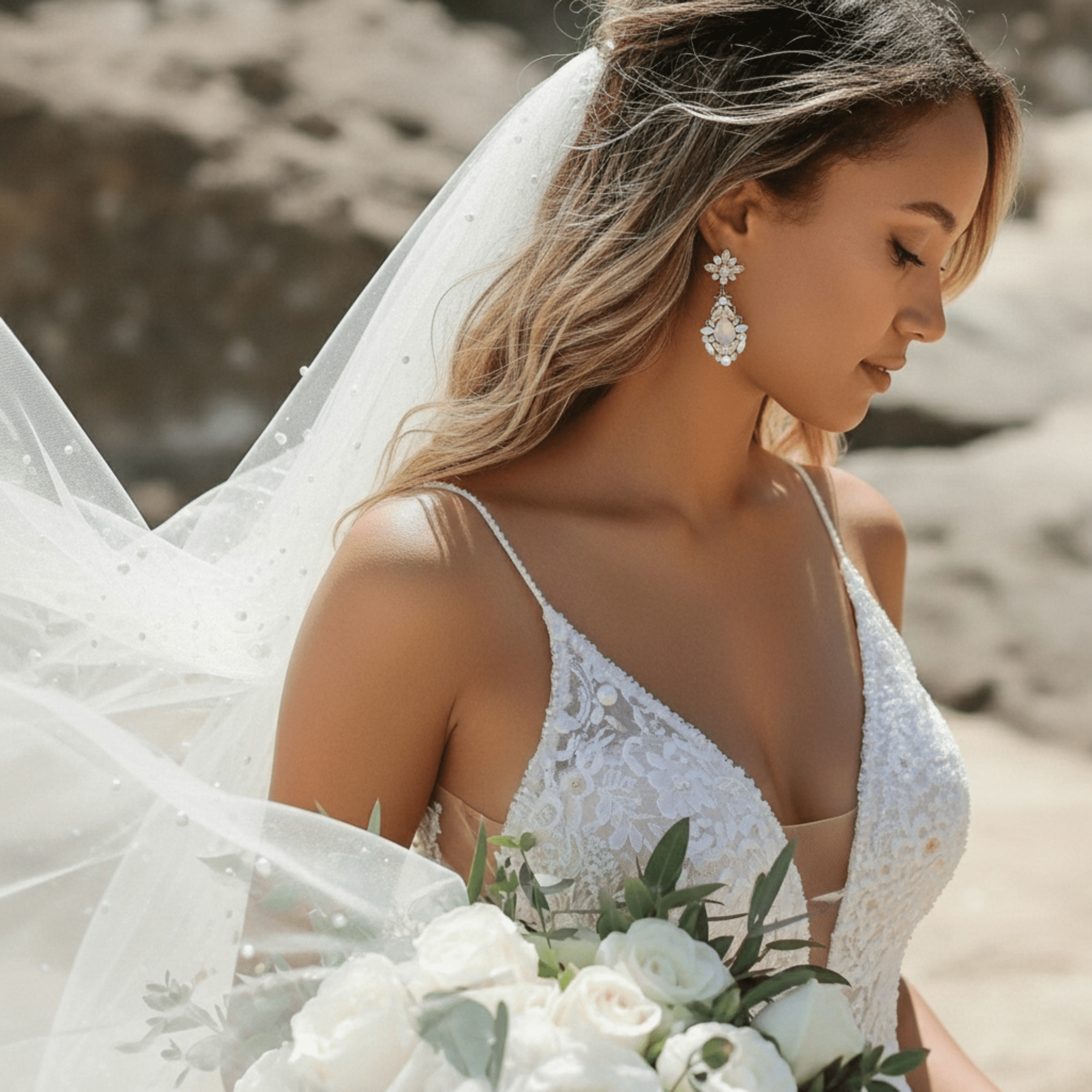 Their ornate silhouette and subtle vintage influence make the Blakely Earrings perfect for brides who love refined sparkle with a unique, handcrafted touch. Lightweight and comfortable, they’re designed to shine beautifully from ceremony to reception.