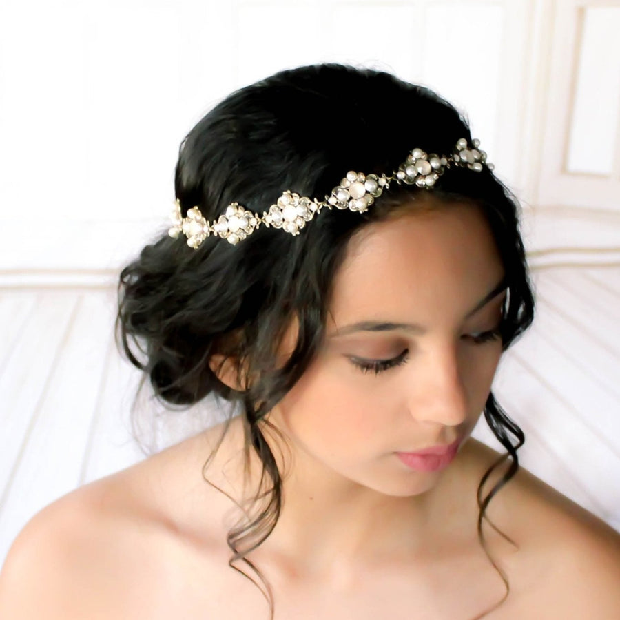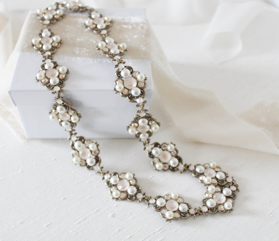 Antique gold crystal Bridal headband - ASHLYN - Treasures by Agnes