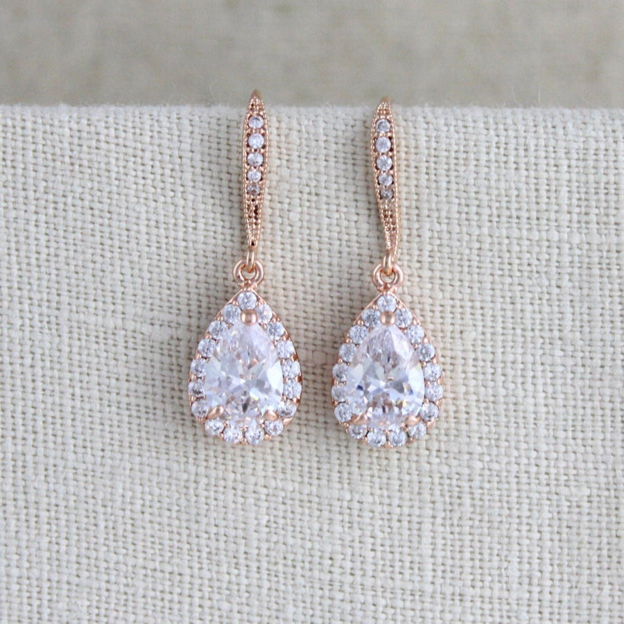 Simple rose gold crystal drop bridal earrings - NORAH - Treasures by Agnes