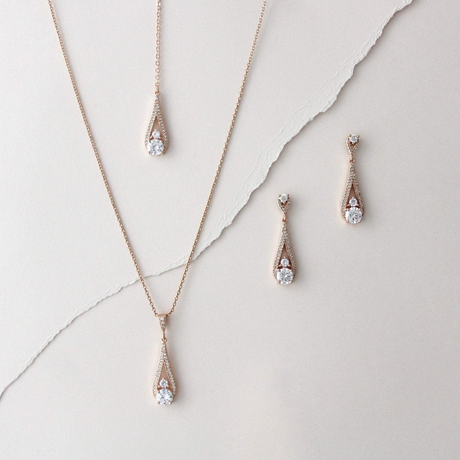 Delicate Rose gold Backdrop necklace and earring set - PRISCILLA