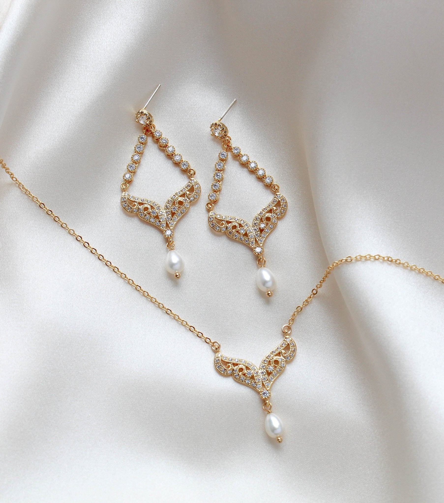 Expertly handcrafted to order, the BLAIRE gold pendant necklace boasts a dazzling pave cubic zirconia base with a lustrous freshwater pearl drop. The perfect bridal accessory, this necklace exudes elegance and sophistication for any special occasion.
